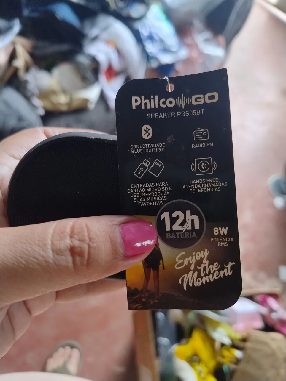 Aproveite suas músicas em qualquer lugar com a caixa de som Philco PBS05BT! Com Bluetooth 5.0, rádio FM, entradas para cartão micro SD e USB, você tem diversas opções para ouvir suas músicas favoritas. Além disso, atenda chamadas telefônicas com a função hands-free. Com 12h de bateria e 8W de potência RMS, a diversão é garantida! (Ótimo para ambientes pequenos -quarto/banheiro)