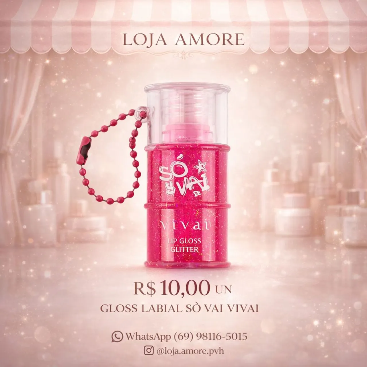 Realce a beleza dos seus lábios com o Gloss Labial Sò Vai Vivai! Com glitter vibrante, ele proporciona um brilho incrível e um toque de glamour ao seu visual. Perfeito para um look deslumbrante em qualquer ocasião.