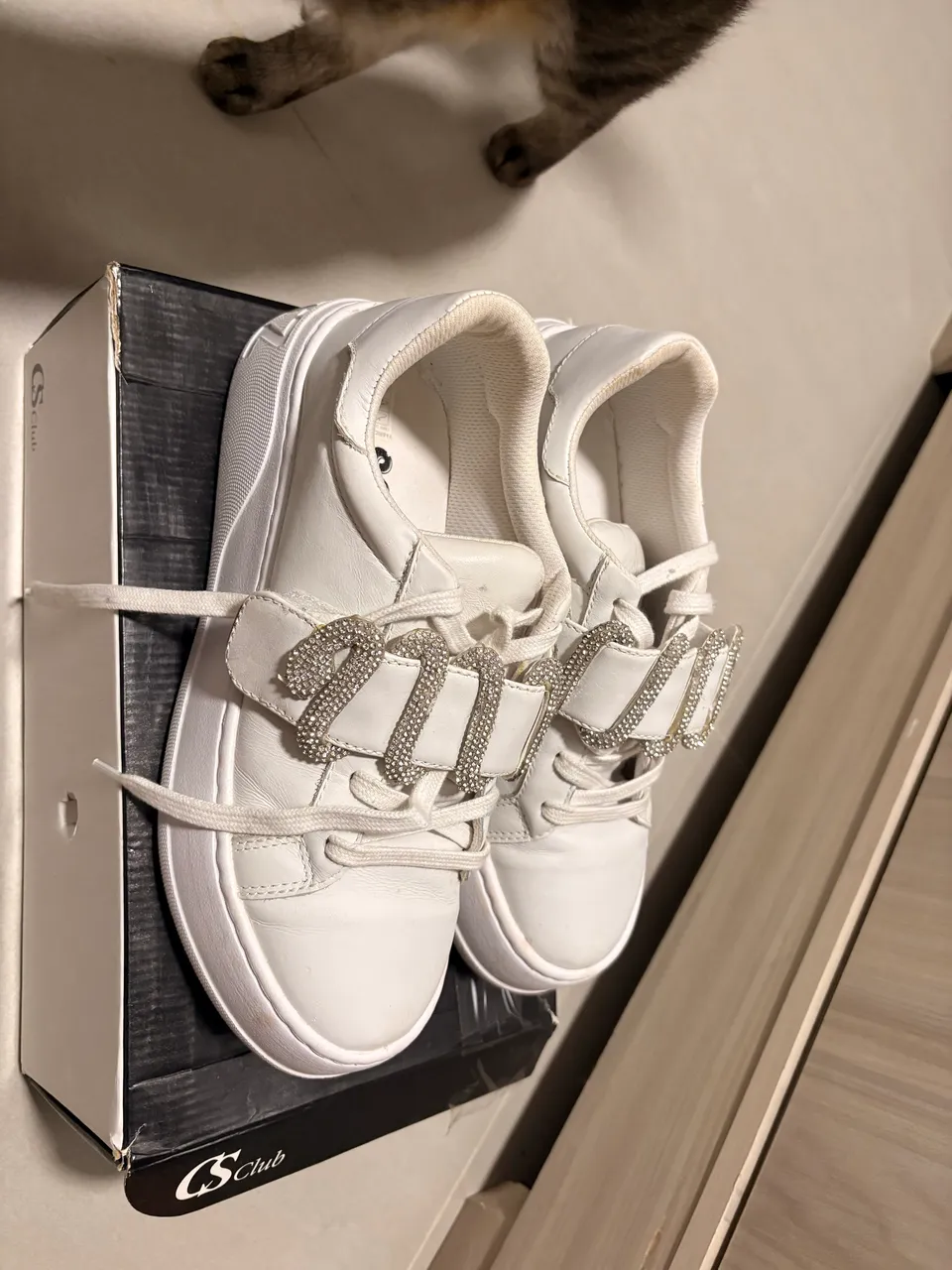 Tênis Schutz branco com detalhes em pedraria, perfeito para quem busca estilo e sofisticação em cada passo.