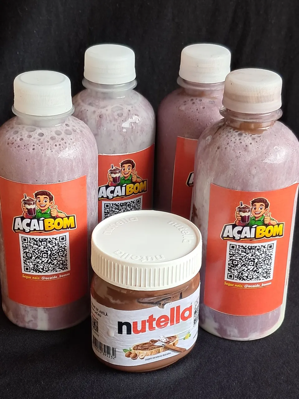 Batidinha de Açai na garrafa Sabores: Nutela com leite ninho E o tradicional leite ninho com leite condensado.