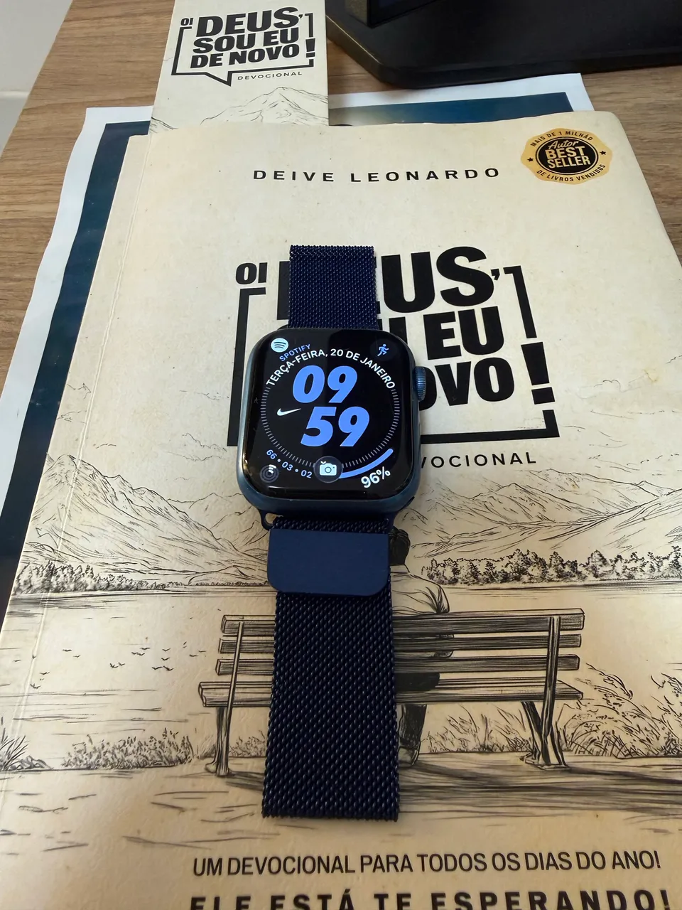 Vendo Apple Watch Série 7 45 mm em perfeito estado, sempre usado na película usado há 1 ano, com carregador original, tenho caixa, tudo funcionando perfeitamente.