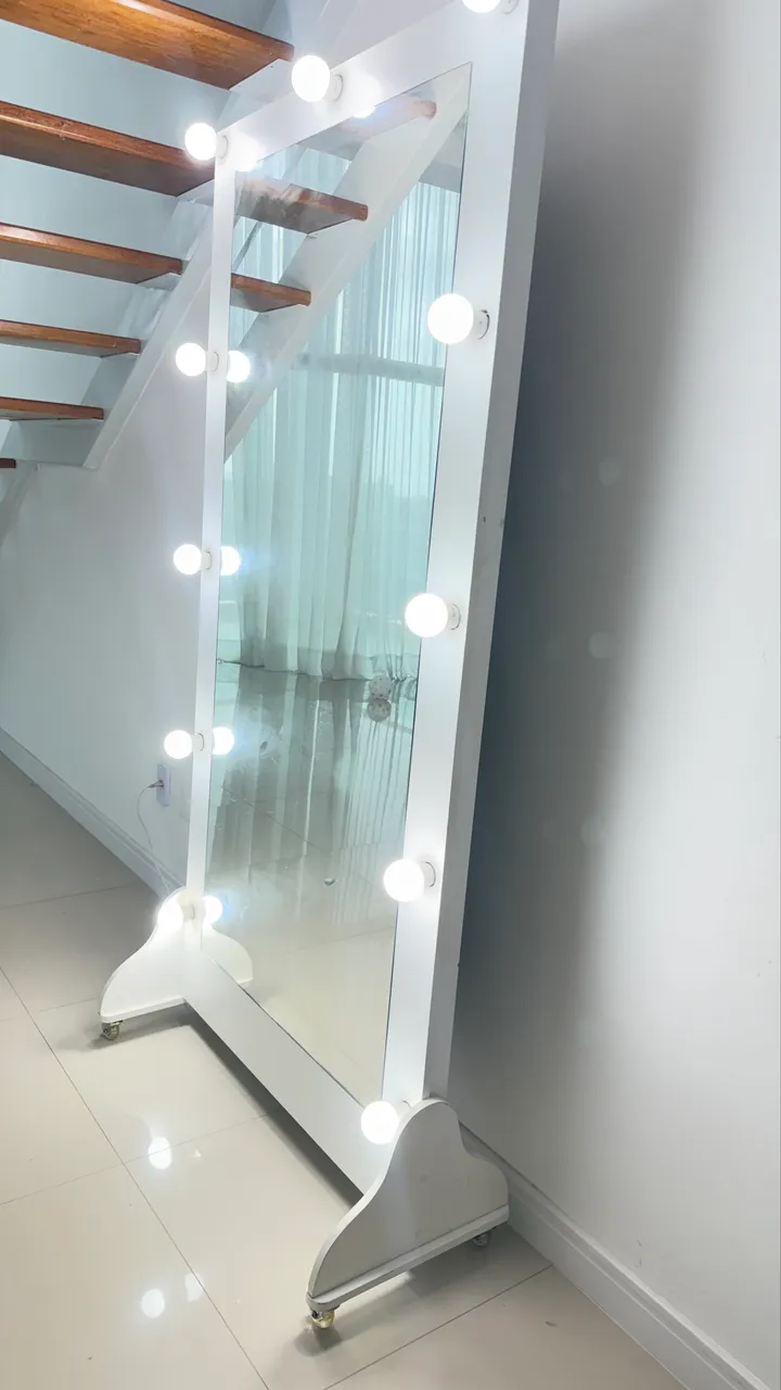 Espelho camarim perfeito para maquiagem, com iluminação embutida e design elegante que adiciona um toque de sofisticação ao seu espaço.