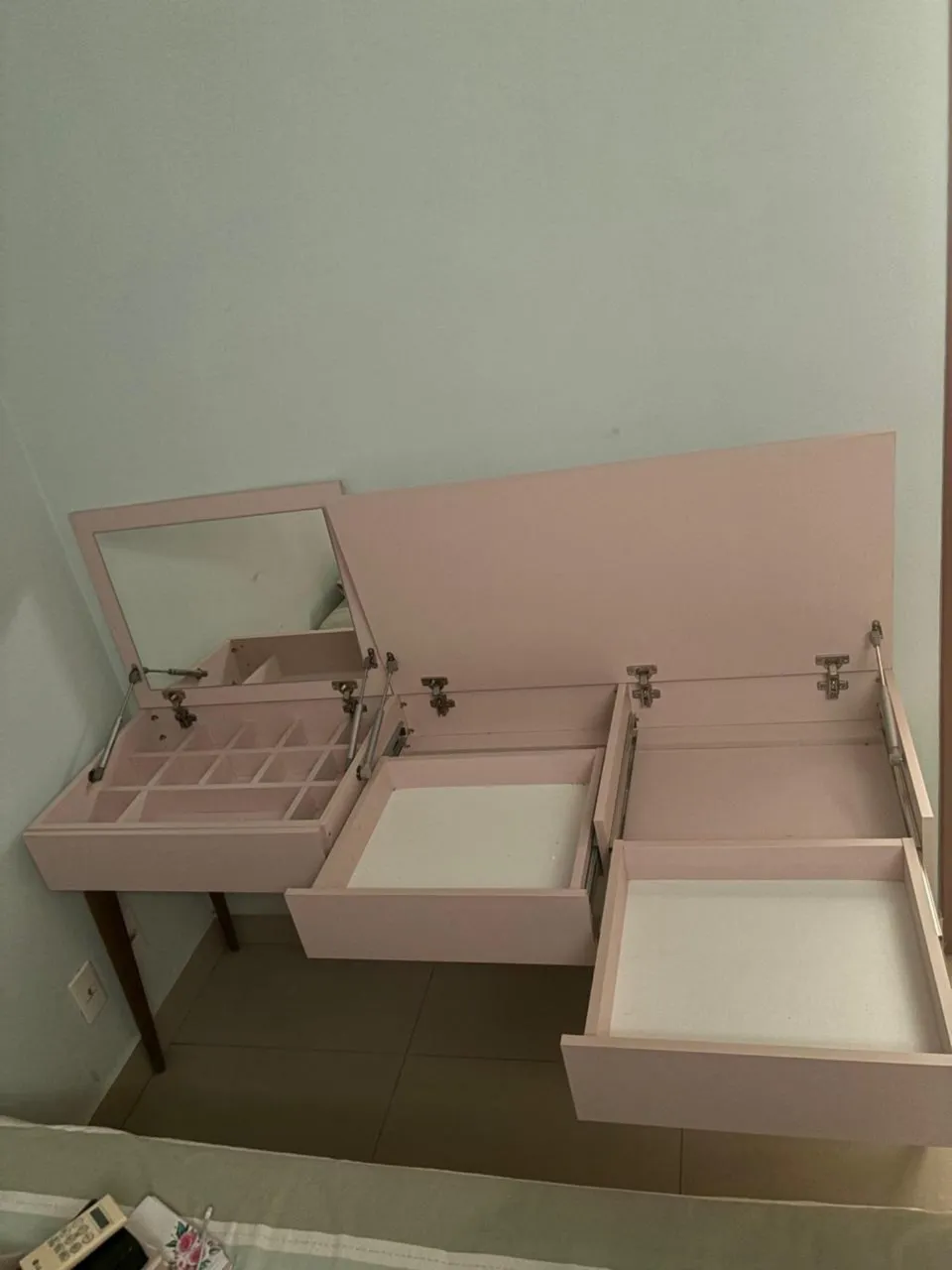 Linda penteadeira com design moderno e funcional, perfeita para organizar seus pertences e criar um espaço charmoso. Com gavetas espaçosas e espelho, ideal para sua rotina de beleza.