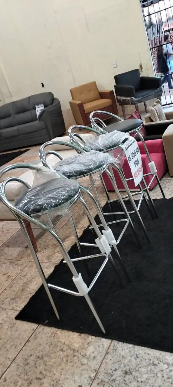 Conjunto de banquetas cromadas, ideais para bancadas e áreas de lazer. Design moderno e elegante para complementar seu ambiente. Conforto e estilo em um único produto!