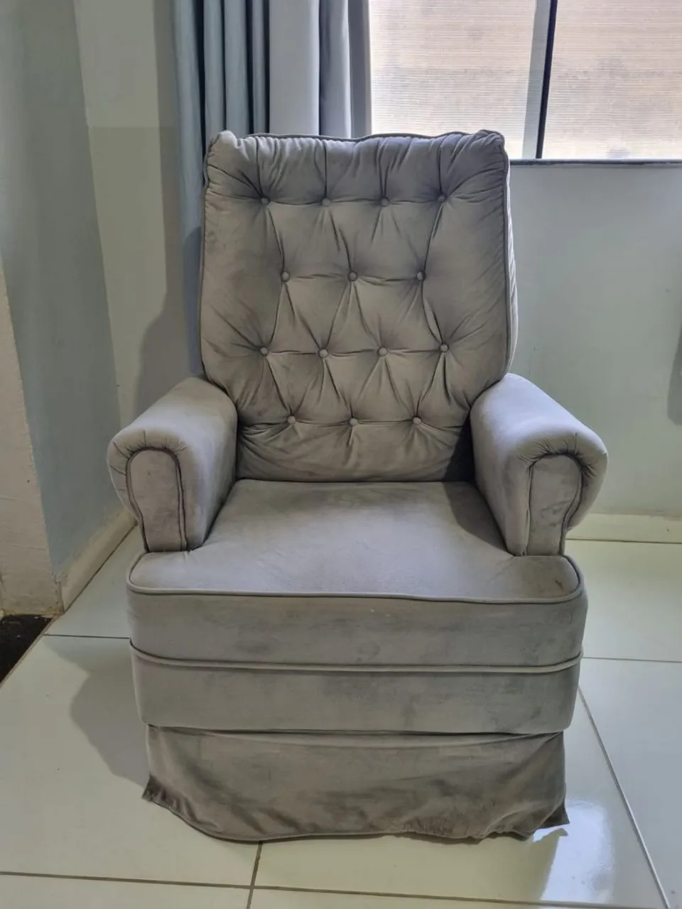 Cadeira de amamentação em perfeito estado, semi nova usada poucos meses. Super confortável. Acompanha banco para apoiar os pés. Ela tem movimento de balanço também.