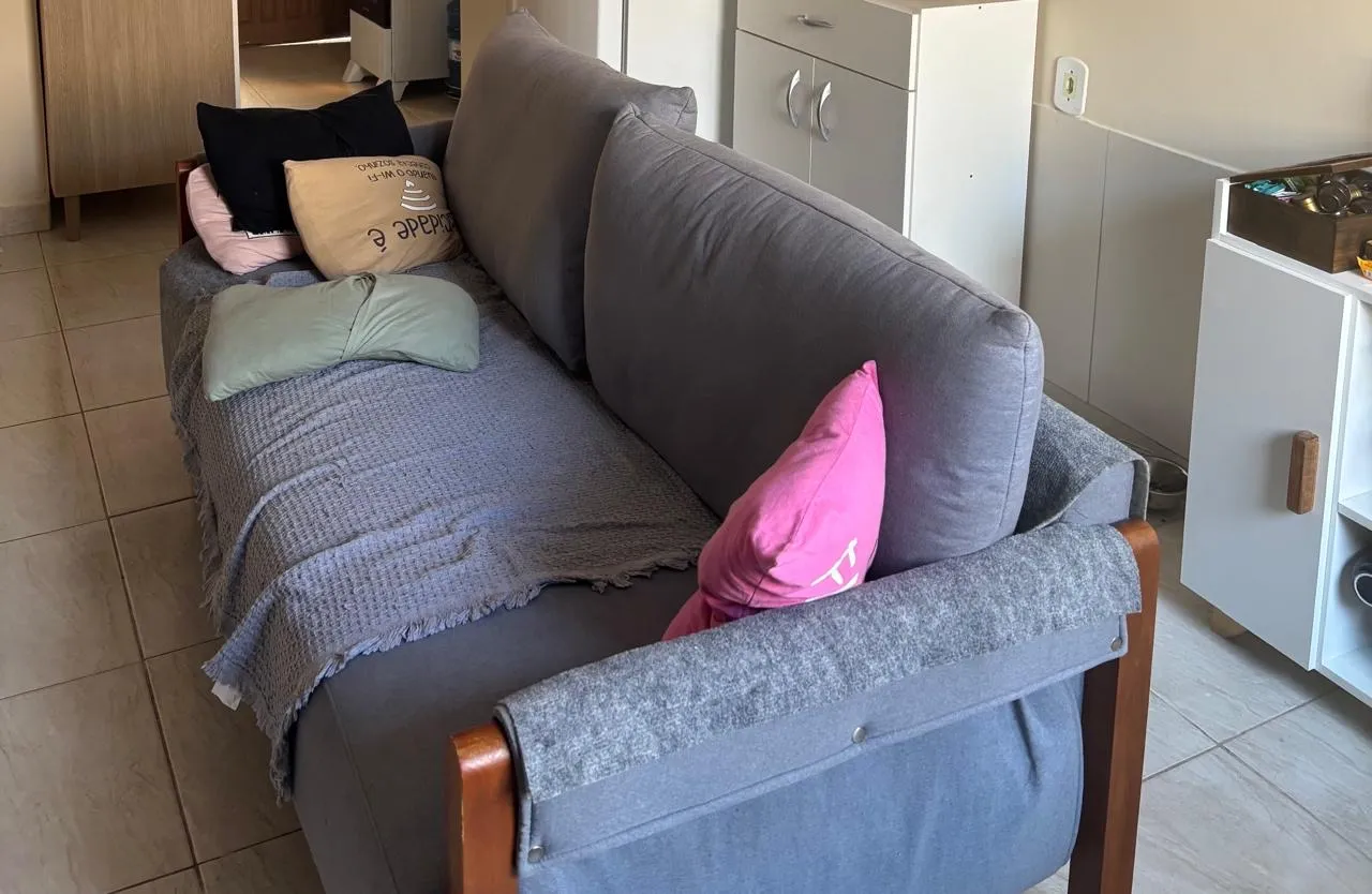 Sofá confortável de três lugares, perfeito para relaxar e decorar sua sala. Design moderno e elegante, ideal para criar um ambiente acolhedor.