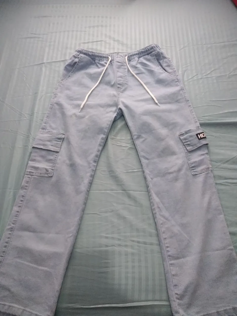 Calça cargo azul clara, tamanho 38, usada somente 3 vezes, sem nenhuma mancha visível ?